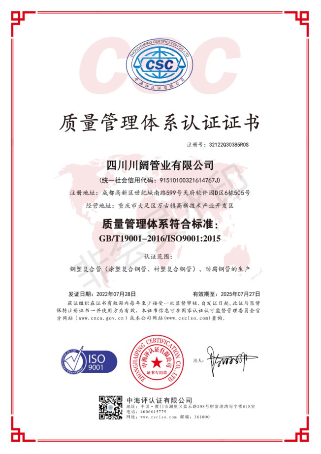 Copyright ? 2019 四川川闊管業有限公司 專業生產研發消防涂塑鋼管,排水復合鋼管,熱浸塑鋼管等系列產品及其配件